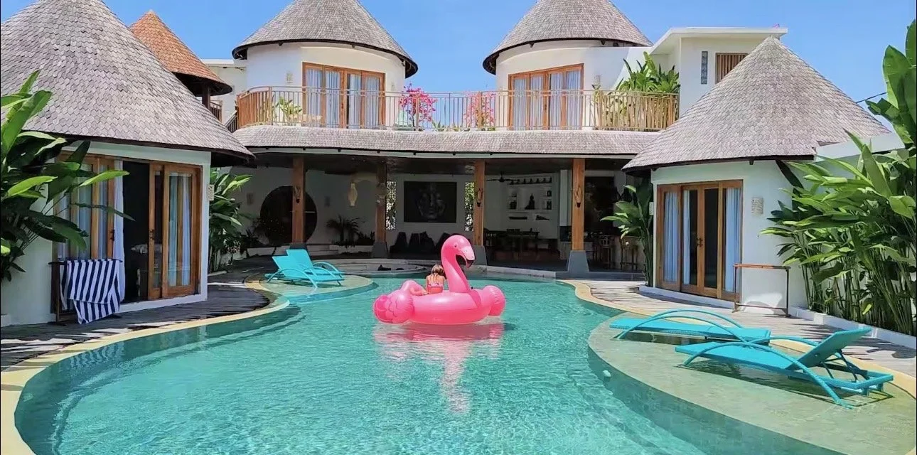 A tranquil Balinese villa setting with private king bedrooms and your own private bathroom, air conditioning, daily housekeeping, and shared pool spaces. Designed for comfort, privacy, and restoration throughout the week.